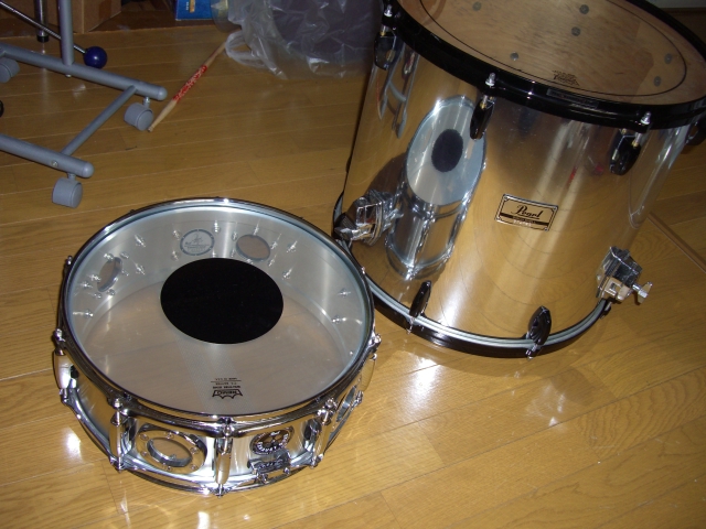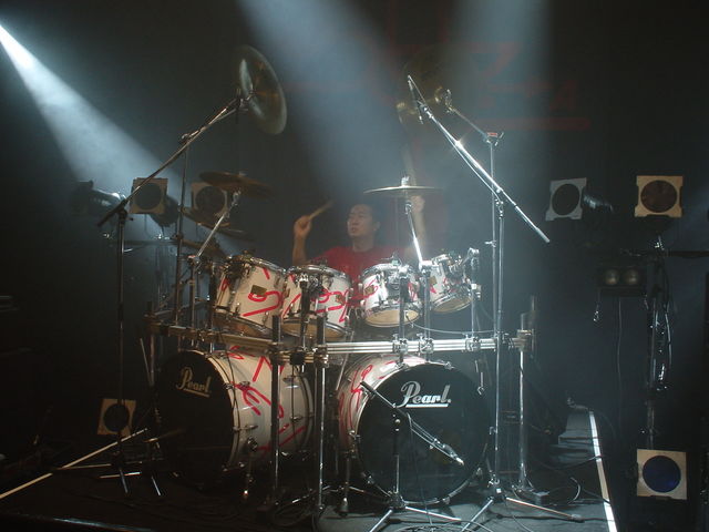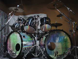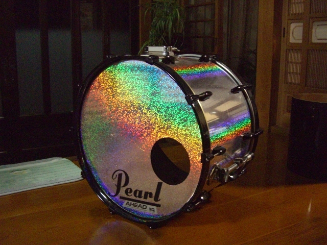 黒いバスドラとフロアはキラキラのホログラム仕様にしてたんだが、